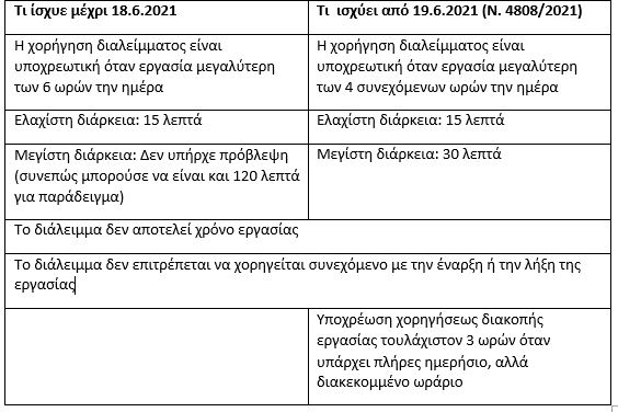 Το διάλειμμα των εργαζομένων μετά τις ρυθμίσεις του ν 4808/2021